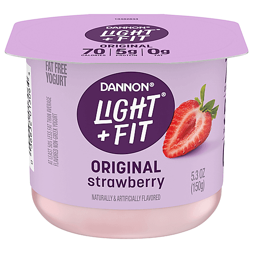 Looking for a delicious fat free yogurt with creamy strawberry flavor? Give your taste buds a reason to rejoice with a Dannon Light + Fit Strawberry Original Nonfat Yogurt Cup. Every bite of this strawberry flavored yogurt makes it easy to love fat free snacks with this delicious light yogurt brand.* At Light + Fit, we serve balanced packed full of delightfully creamy yogurt so you can be your best self. Our fat free yogurt comes in a cup so you can enjoy a serving anytime as a snack at work or as a late-night snack. With 70 calories and 5g of protein per serving, it’s a delicious, convenient option. Enjoy it as a simple snack or add a cup to your breakfast parfaits and yogurt smoothies. Or, use some in your favorite recipes as a flavorful substitute for baking ingredients. Add some joy to your day, every day, with Light + Fit Strawberry Original Nonfat Yogurt. *At least 50% less fat than average flavored non-Greek yogurt; Light + Fit: 50-60 calories, 0g fat; Average flavored non-Greek yogurt: 100 calories, 2g fat per 4 oz.
