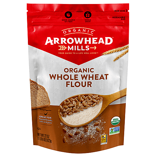 Delicious baking from scratch is at your fingertips with Arrowhead Mills Organic Whole Wheat Flour. This non-GMO Arrowhead Mills organic flour is ground in old fashioned mills, just as it had originally been produced more than 40 years ago. With 35 grams of whole grains per serving, this whole grain flour is a good fiber source and a true American grain staple. Use this baking flour to whip up fluffy whole grain pancakes, muffins or waffles. Perfect for baking whole wheat bread or dinner rolls, Arrowhead Mills flour helps make everyday special. Each 22 oz bag of flour is resealable and easy to store, making it a great addition to your baking ingredients. Arrowhead Mills has been one of America’s most trusted organic baking brands for over 50 years with high standards and commitment to simply made products. It’s simple. No shortcuts. Just 100% commitment to quality.