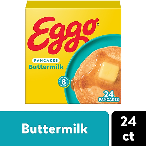 Wake up and greet the day with a true blue classic! Eggo Buttermilk pancakes are light, fluffy, and tasty as ever - just like you remember them. They’re the perfect balance of warm goodness and yummy flavor, and they pair perfectly with your favorite breakfast sides. Crafted with delicious ingredients and the smooth taste of buttermilk, these frozen pancakes couldn’t be easier to make. Pop them in the microwave or oven and feel good about what you’re serving your family; They provide a good source of 8 vitamins and minerals and are made with no artificial colors or flavors (see nutrition information for sodium content). Conveniently packaged and simple to prepare, Eggo Buttermilk pancakes have been filling kitchens with sweet aromas and warm memories for decades. Made to enjoy as part of breakfast, add your favorite morning toppings such as butter and syrup, jelly or jam, or whipped cream. No matter how you top ’em, it's always an “mmmmm” moment. They're just so delicious, why would you L'Eggo your Eggo?