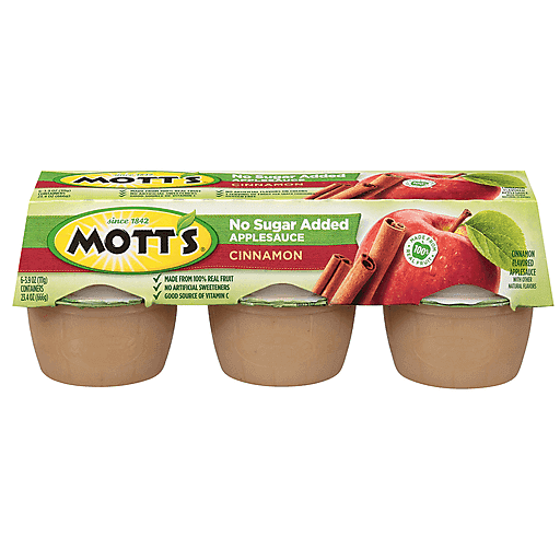 The original, delicious treat, Mott's No Sugar Added Cinnamon Applesauce is the perfect snack or meal companion. It's a good source of Vitamin C and free of cholesterol. Bringing the best of the orchard to your household, Mott's helps families enjoy delicious fruit goodness every day. The apple juice and sauce brand is dedicated to giving moms easy ways to help their families be their very best. Mott's has a strong heritage and has been the trusted apple juice and sauce brand since 1842. Mott's hold the apples to a very high standard, that's why the products pack lots of delicious fruit flavor from ripe apples into every serving. Enjoy Mott's in a variety of pack types including pouches, cups, jugs, juice boxes and jars; so whether you're home with your family or on-the-go and in need of a snack, Mott's has a product for you. You won't find any artificial flavors in Mott's products, so you can feel good about making healthy choices.