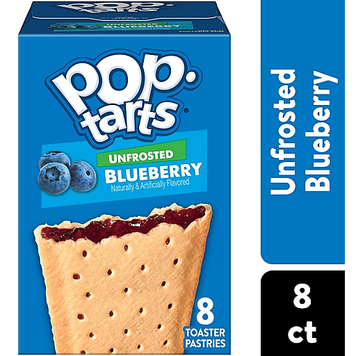 Pop-Tarts toaster pastries are the perfect sweet treat at breakfast, for lunch snack time, or dessert. Featuring a sweet blueberry-flavored filling in a soft pastry crust, this ready to eat treat is perfect for snack time for kids and adults on the go. Pack Pop-Tarts Unfrosted Blueberry in lunchboxes or backpacks when it's time for school snacking, or stock the office pantry with this individually wrapped grab and go adult snack time choice. Pop them in the toaster and pair with milk, create your own ice cream sandwiches, or incorporate into your favorite dessert recipe for a sweet treat. These irresistible snack time options for kids and adults provide a good source of three B vitamins. Stock your pantry with these shelf stable snack alternatives and enjoy ready to eat treats anytime. A flavor for everyone, including beloved classics like Frosted Strawberry or Frosted Cherry, or our more indulgent flavors, Frosted Cookies and Creme or Frosted Chocolate Fudge.