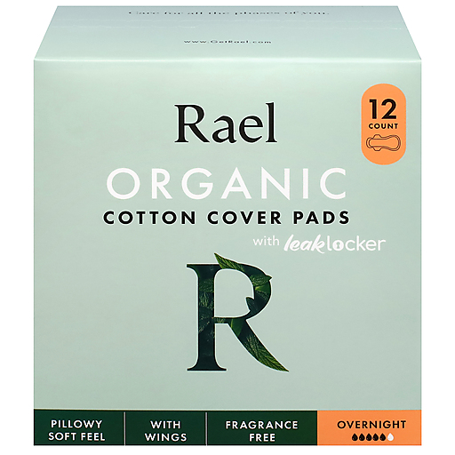 Rael Organic Overnight Cotton Cover Pads 12 ea
