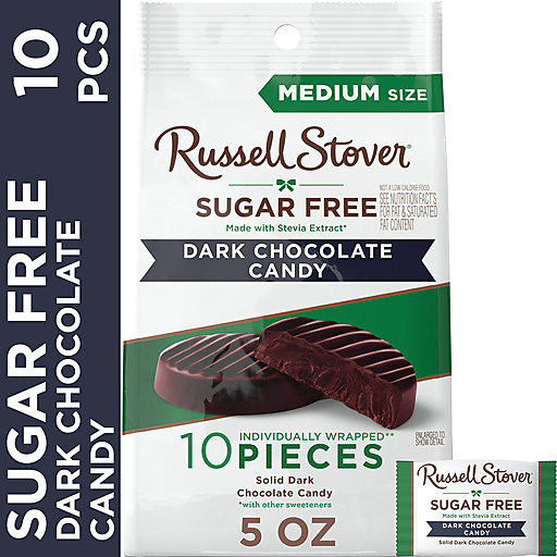 Discover the Unbelievable Taste of RUSSELL STOVER Sugar Free Dark Chocolate Medallions Candy - where zero sugar meets seriously delicious! Each 5 oz. bag contains about 10 individually wrapped pieces of decadent, solid dark chocolate candy made with Stevia, a plant‑based sweetener. Individually wrapped for an on-the-go treat, filling up the candy bowl or thoughtful sharing - our sugar free chocolate candy offers the perfect balance of sweetness without compromising on flavor. An American classic since 1923, RUSSELL STOVER has been honoring the craft of chocolate-making using only the finest ingredients and we are proud to offer great tasting, sugar free alternatives to your favorites!